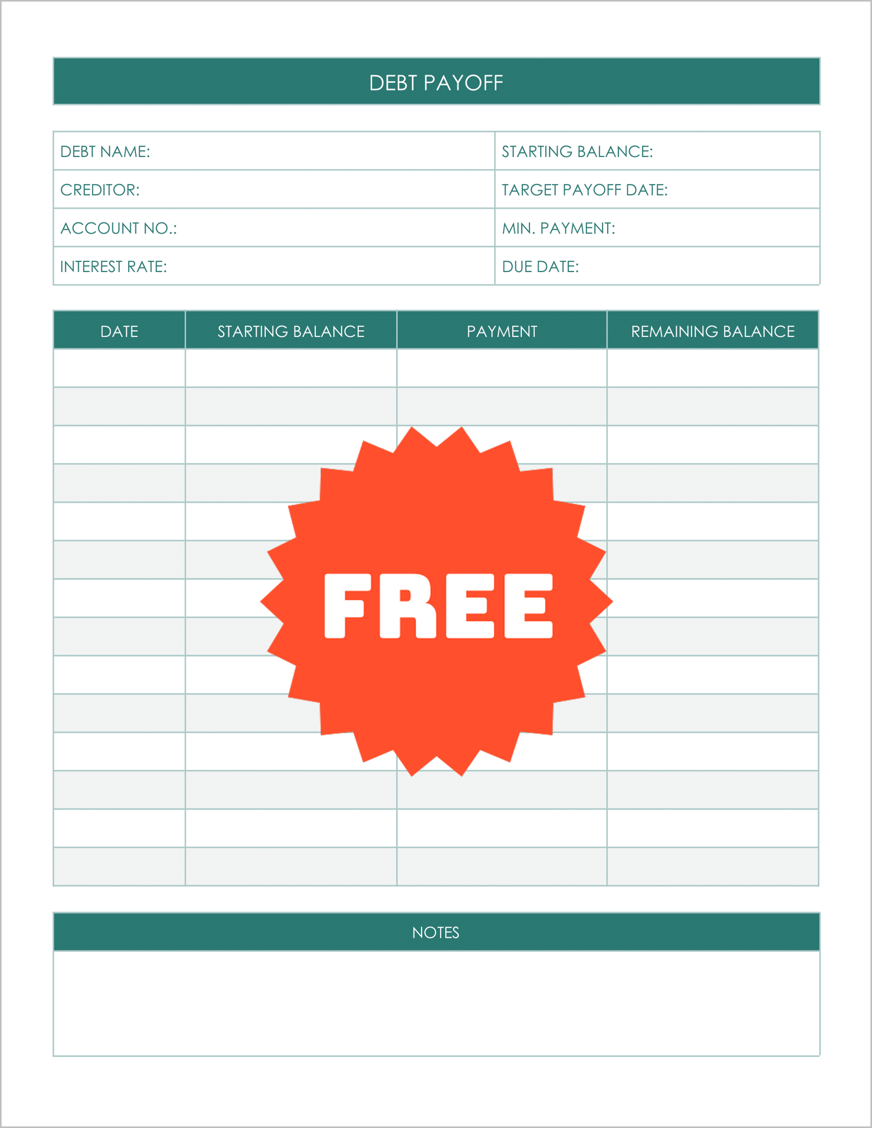 If you find complex forms overwhelming, use this template. It strips away the noise, leaving simple fields for Debt Name, Target Payoff Date, and a clean table to track the Starting Balance vs. Remaining Balance. It’s clean, simple, and effective.