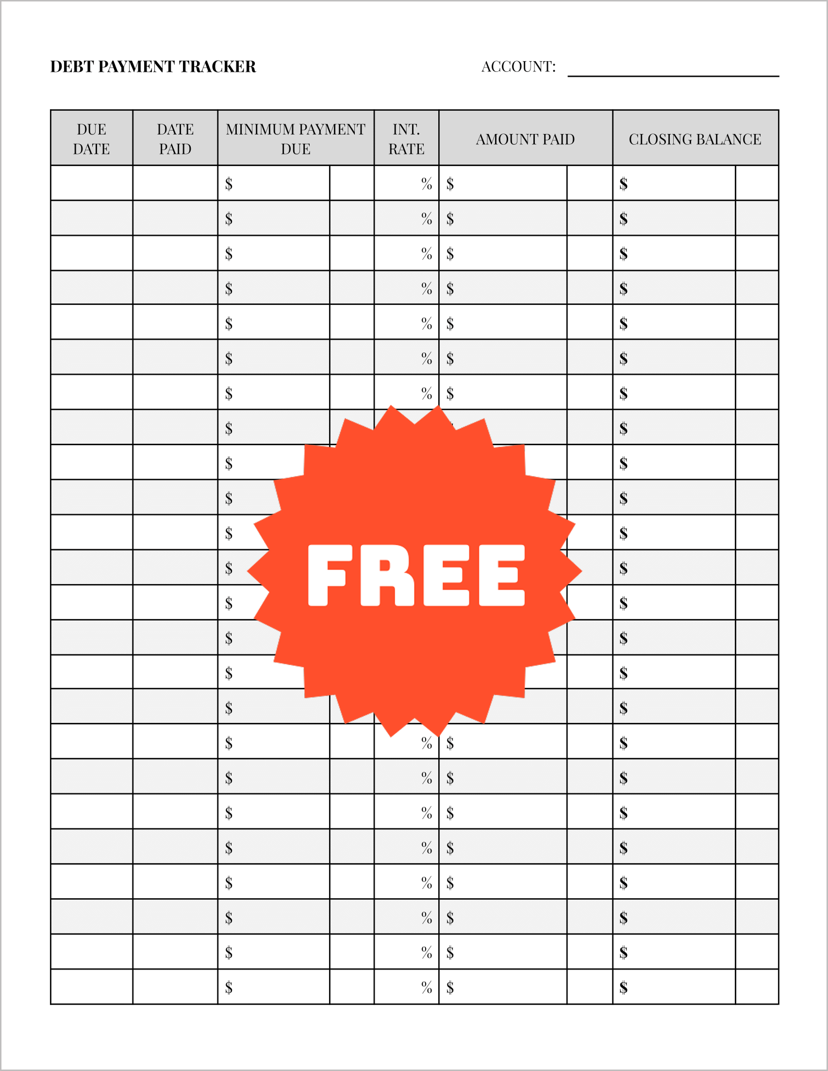 Most trackers focus on one debt at a time. This master list allows you to track up to 24 different debts on a single page.